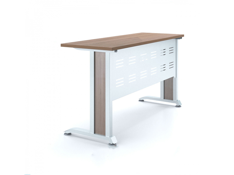 Металлокаркас для столов со вставкой из ЛДСП. Для жесткости опоры соединяются панелью ЛДСП или металлическим экраном. Для удобства использования, плоскость экрана (элемента жесткости) отодвинута к дальнему от оператора краю столешницы. Минимальная глубина столешницы - 500 мм.Стандартная высота опоры - 725 мм, возможно исполнение опор в соответствии с ростовыми группами.